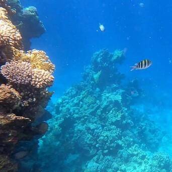 6、推荐一个公共沙滩,定位:EI Fanar Beach ,门票150埃镑可以坐躺椅一天,沿着栈道下去浮潜景色超绝,左右两边的珊瑚特别漂亮;