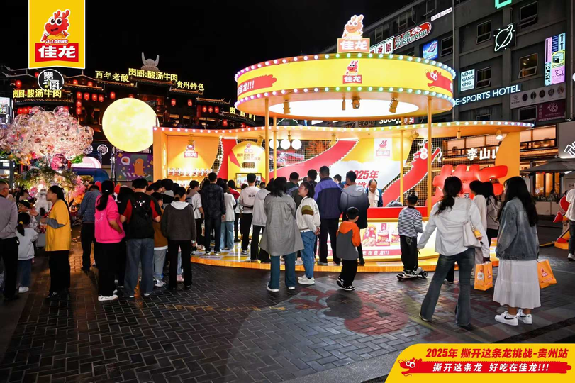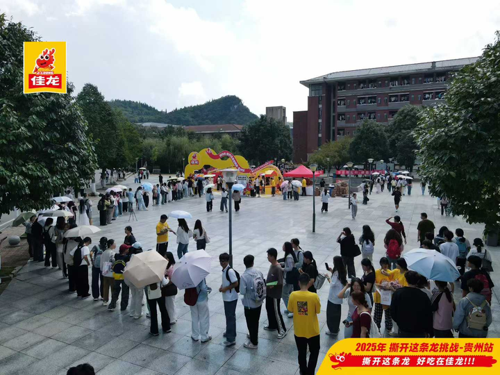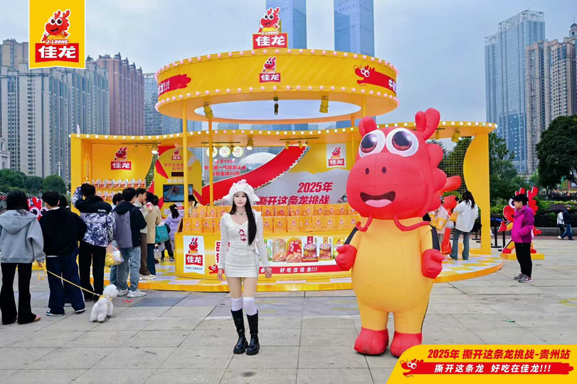 近期,佳龙登陆贵州的“2025年撕开这条龙挑战”上演“玩法进化”。活动先后在贵阳青云市集、花果园购物中心、贵州财经大学与贵州大学落地,凭借10万包免费试吃、1万份免费福袋的硬核投入,再次掀起游客与学生热情,但这背后,是一个焕新升级的2.0版本互动逻辑。